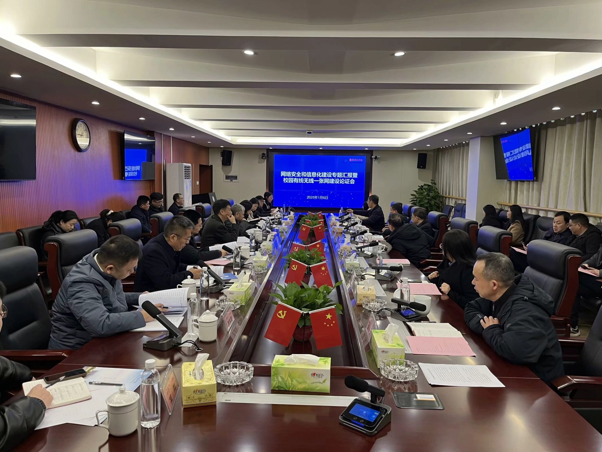本网讯(通讯员 苏炅 刘琰)2025年1月6日上午,388vip太阳集团在一办公楼一会议室召开网络安全和信息化专题暨校园“有线无线一张网”建设论证会。全体校领导、校内外专家、信息化建设工作小组成员、通讯运营商代表、厂商代表,388vip太阳集团,388vip太阳集团官网全体成员参加会议。会议由副校长雷存喜主持。